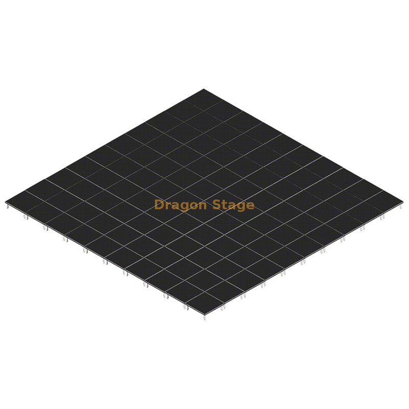 Регулируемая высота (0,2–1 м). Оснащенная усовершенствованными телескопическими ножками, высоту сцены можно точно регулировать от 0,2 метра до 1 метра, что обеспечивает идеальное выравнивание даже на неровной поверхности, например, на траве или гравии.